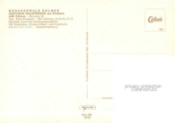 73542433 Duelmen Haus Waldfrieden Maerchenwald postalisch nicht gelaufen Erhaltung siehe scans [KathaD81] KatCode: 11110005558016
