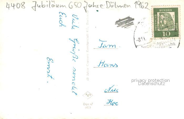 73707167 alte Postkarte Duelmen Jubilaeum 650 Jahre Duelmen Wildpferde Marienplatz Luedinghauser-Tor postalisch gelaufen Erhaltung siehe scans [LiesaD40] KatCode: 11110005558016