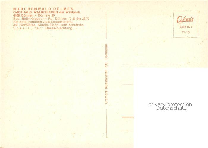 73649718 Duelmen Maerchenwald Duelmen Gasthaus Waldfrieden am Wildpark Details postalisch nicht gelaufen Erhaltung siehe scans [WerneD78] KatCode: 11110005558016