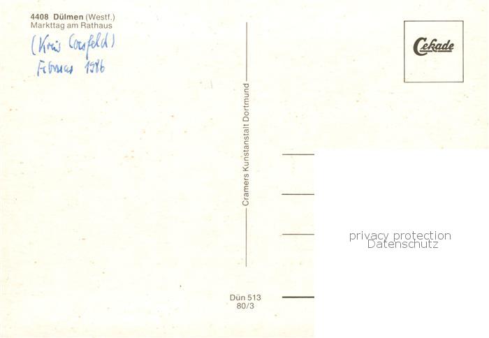 73852552 alte Postkarte Duelmen Markttag am Rathaus postalisch gelaufen Erhaltung siehe scans [WerneD78] KatCode: 11110005558016