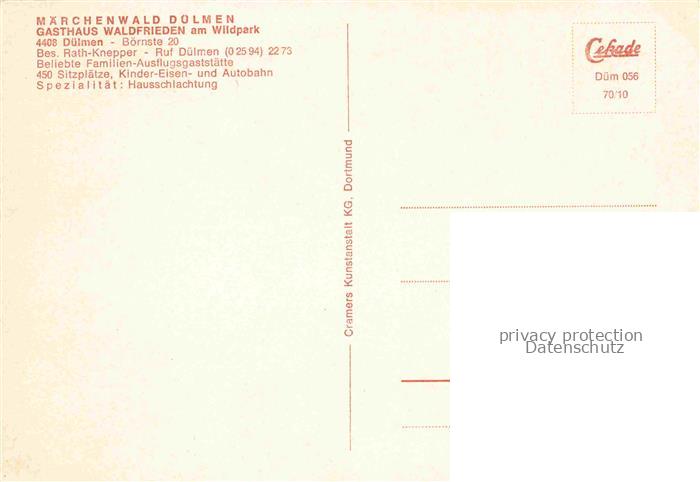 74039743 DueLMEN NRW Gasthaus Waldfrieden Gastraeume Wildpferde im Merfelder Bruch postalisch nicht gelaufen Erhaltung siehe scans [WerneD78] KatCode: 11110005558016