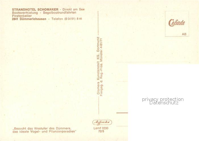 73705846 Duemmerlohausen Strandhotel Schomaker Seglerhafen postalisch nicht gelaufen Erhaltung siehe scans [FriedD77] KatCode: 11110003460002