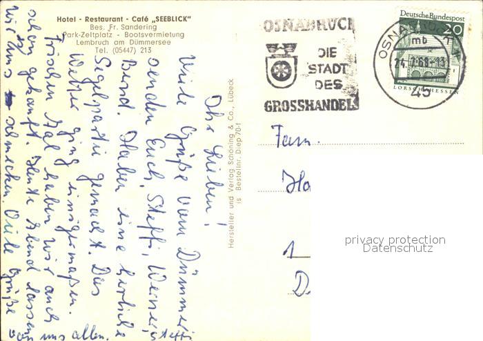 alte Postkarte Duemmersee Diepholz Hotel Restaurant Cafe Seeblick postalisch gelaufen Erhaltung siehe scans