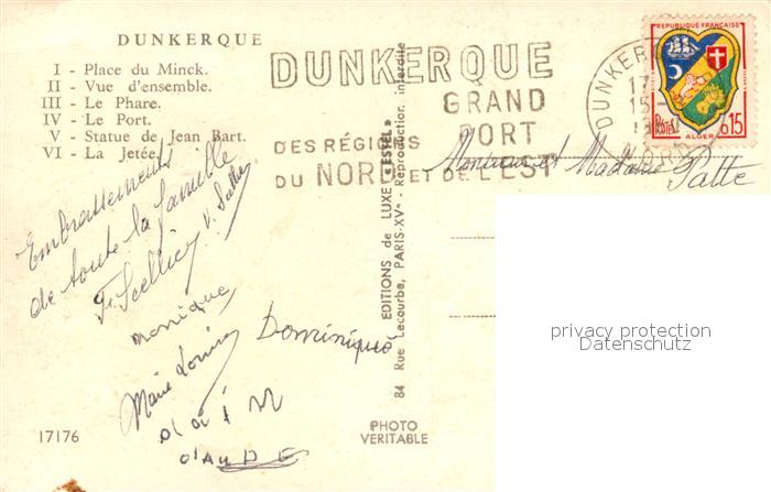 13580401 carte postale Duenkirchen Dunkerque Place du Minck Vue d’ensemble Le Phare Le Port Statue de Jean Bart La Jetee postalisch gelaufen Erhaltung siehe scans [WerneD78] KatCode: 11170059459183
