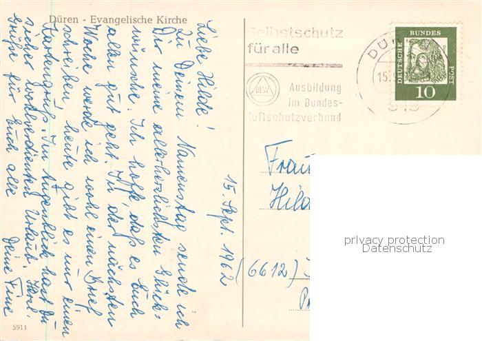 73870067 alte Postkarte Dueren Rheinland Ev Kirche postalisch gelaufen Erhaltung siehe scans [WerneD78] KatCode: 11110005358008