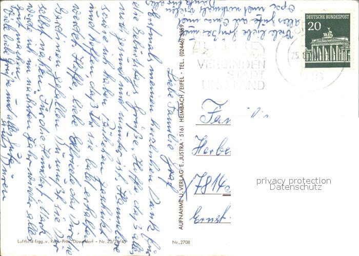 72464164 alte Postkarte Dueren Rheinland Fliegeraufnahme Rathaus Stadthalle Burg Nideggen Rurtalsperre Schloss postalisch gelaufen Erhaltung siehe scans KatCode: 11110005358008