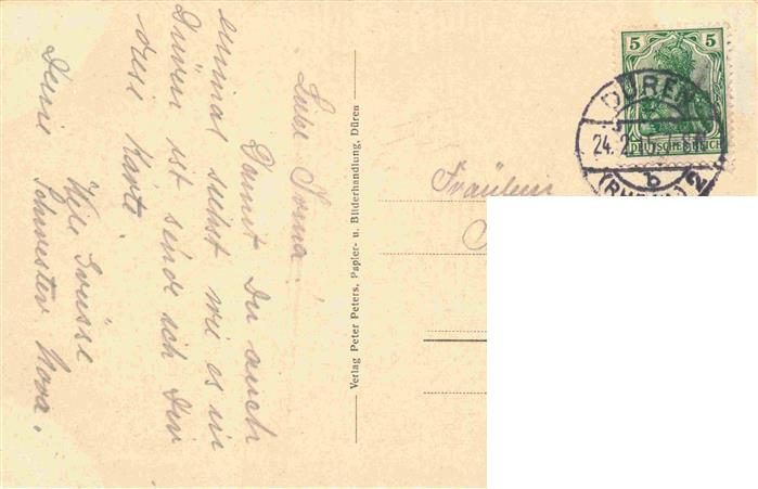 73972177 alte Postkarte Dueren Rheinland Gartenpartie an der Oberstrasse postalisch gelaufen Erhaltung siehe scans [FriedD77] KatCode: 11110005358008