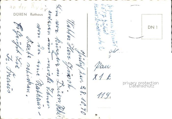 71972704 alte Postkarte Dueren Rheinland Rathaus postalisch gelaufen Erhaltung siehe scans KatCode: 11110005358008