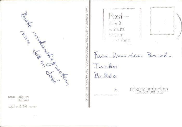 72573512 alte Postkarte Dueren Rheinland Rathaus postalisch gelaufen Erhaltung siehe scans [KathaD79] KatCode: 11110005358008