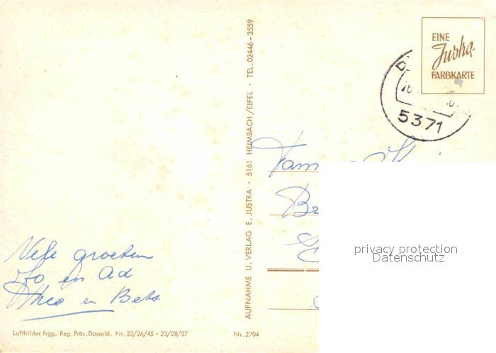 72863623 alte Postkarte Dueren Rheinland Rathaus Fontaene Innenstadt Fliegeraufnahme postalisch gelaufen Erhaltung siehe scans [FriedD77] KatCode: 11110005358008