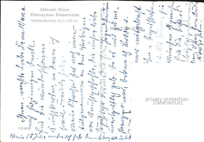 Duerer Albrecht Nuernberg Hieronymus Holzschuher postalisch nicht gelaufen Erhaltung siehe scans