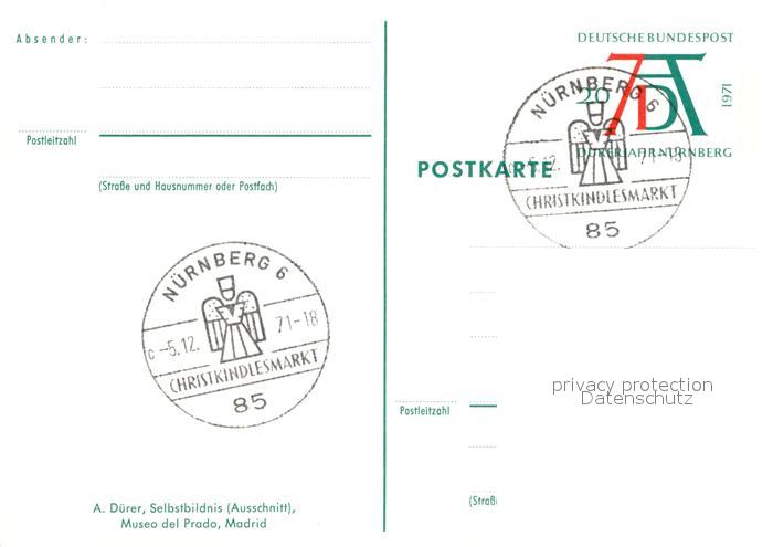 alte Postkarte Duerer Albrecht Nuernberg Selbstbildnis postalisch gelaufen Erhaltung siehe scans [PaolaD17]