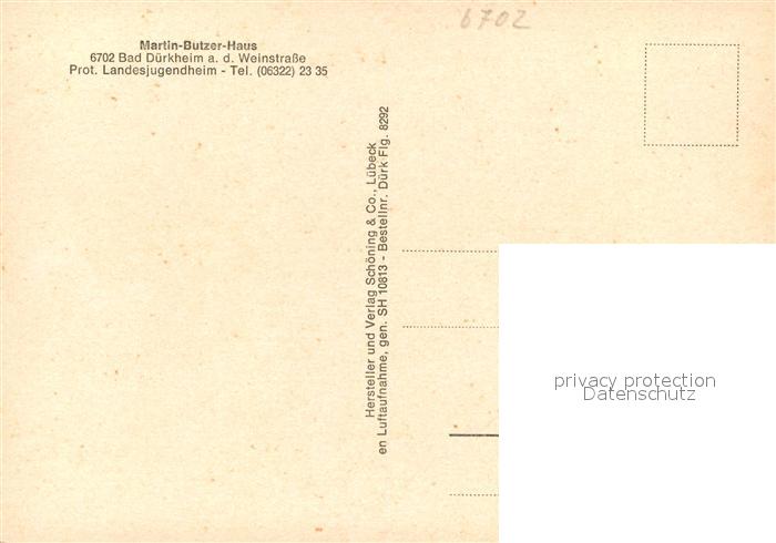 73098615 Duerkheim Bad Martin Butzer Haus Fliegeraufnahme postalisch nicht gelaufen Erhaltung siehe scans [KathaD81] KatCode: 11110007332002