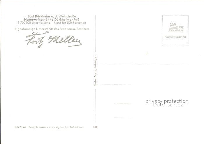 72438046 Duerkheim Bad Naturweinschaenke Duerkheimer Fass postalisch nicht gelaufen Erhaltung siehe scans KatCode: 11110007332002