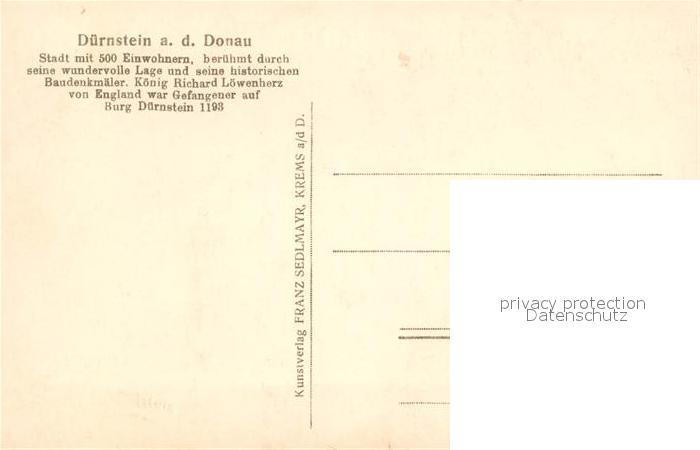 43105853 Duernstein Wachau Blick ueber die Donau Kirche Burgruine Erhaltung siehe scans [FriedD77] KatCode: 11390124031304