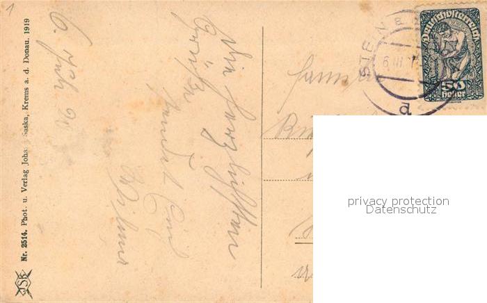 43078588 alte Postkarte Duernstein Wachau Blick ueber die Donau postalisch gelaufen Erhaltung siehe scans [FriedD77] KatCode: 11390124031304