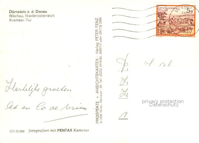 72926956 alte Postkarte Duernstein Wachau Kremser-Tor postalisch gelaufen Erhaltung siehe scans [NatalD47] KatCode: 11390124031304