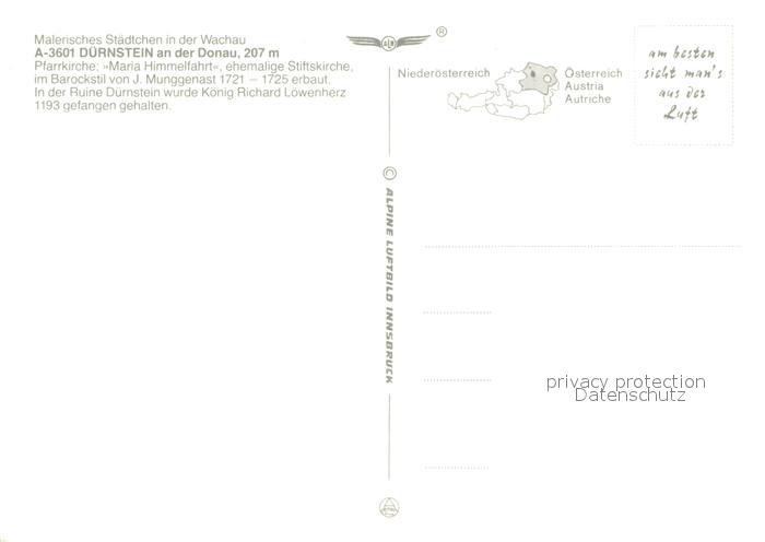 73705097 Duernstein Wachau Pfarrrkirche Maria Himmelfahrt ehem Stiftskirche Ruine Duernstein Fliegeraufnahme postalisch nicht gelaufen Erhaltung siehe scans [WerneD78] KatCode: 11390124031304