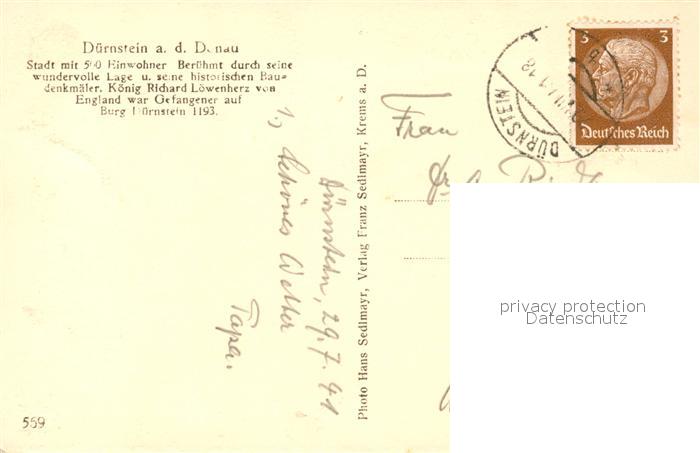 73363532 alte Postkarte Duernstein Wachau Schiffstation postalisch gelaufen Erhaltung siehe scans [WerneD78] KatCode: 11390124031304