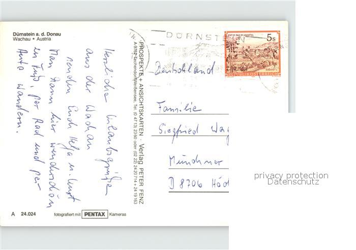 72473422 alte Postkarte Duernstein Wachau Strassenansicht postalisch gelaufen Erhaltung siehe scans KatCode: 11390124031304