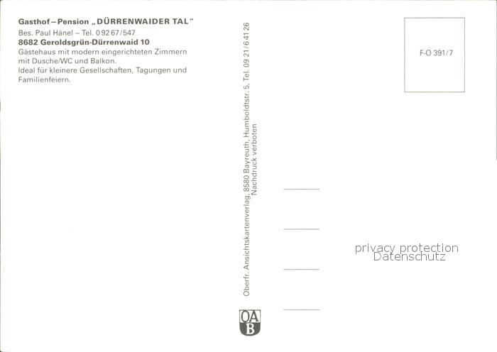 72492308 Duerrenwaid Gasthof Duerrenwaider Tal postalisch nicht gelaufen Erhaltung siehe scans KatCode: 11110009475128