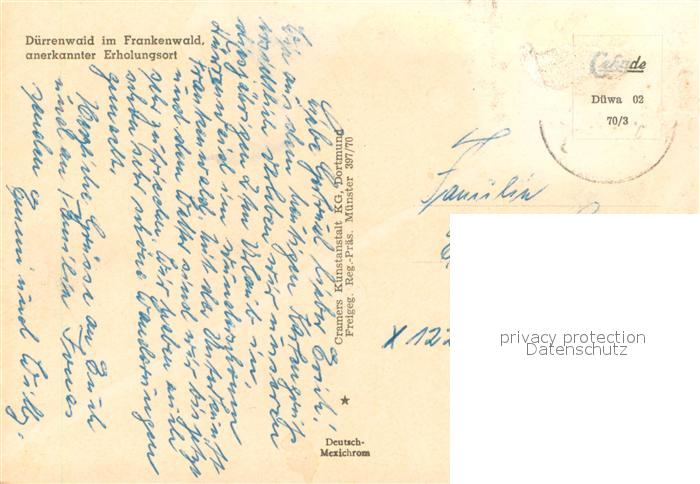 73656269 alte Postkarte Duerrenwaid im Frankenwald Fliegeraufnahme postalisch gelaufen Erhaltung siehe scans [WerneD78] KatCode: 11110009475128