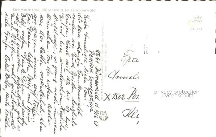 72296276 alte Postkarte Duerrenwaid Sommerfrische Frankenwald postalisch gelaufen Erhaltung siehe scans KatCode: 11110009475128