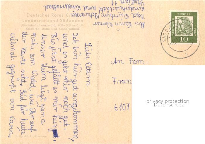 73106551 alte Postkarte Duerrheim Bad Fliegeraufnahme Kinderheilstaette Kindersolbad postalisch gelaufen Erhaltung siehe scans [KathaD81] KatCode: 11110008326003