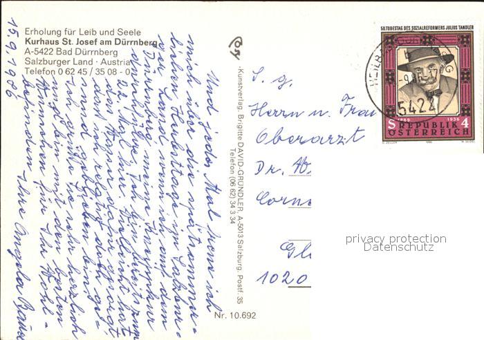 72496232 alte Postkarte Duerrnberg Hallein Kurhaus St Josef Foyer Hallenbad Gastraum Panorama postalisch gelaufen Erhaltung siehe scans KatCode: 11390323050205