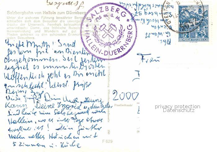 72773680 alte Postkarte Duerrnberg Hallein Salzbergwerk Sesselbahn postalisch gelaufen Erhaltung siehe scans [AndreD76] KatCode: 11390323050205