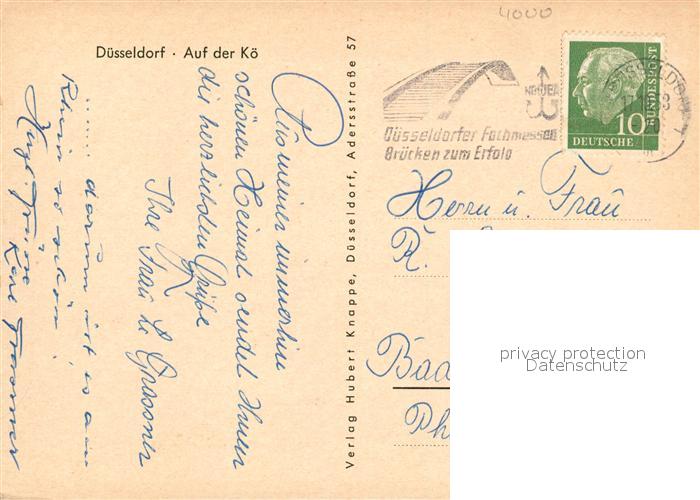73059201 alte Postkarte Duesseldorf Auf der Koe postalisch gelaufen Erhaltung siehe scans [WerneD78] KatCode: 11110005111000