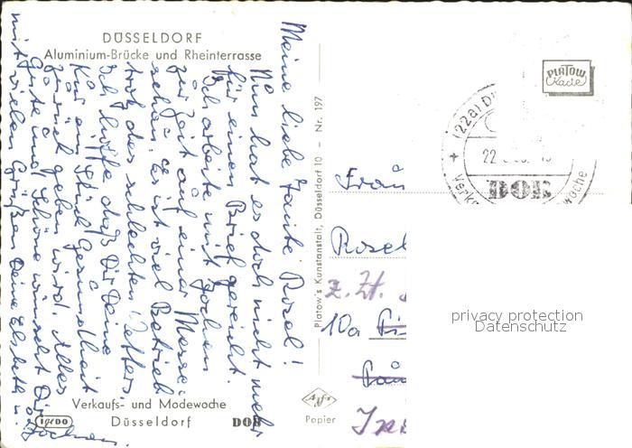 72177594 alte Postkarte DuessELDORF CITY Aluminium Bruecke Rheinterrasse postalisch gelaufen Erhaltung siehe scans KatCode: 11110005111000