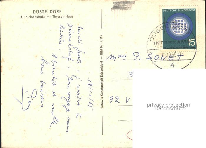 71999493 alte Postkarte DuessELDORF CITY Auto Hochstrasse Thyssen Haus postalisch gelaufen Erhaltung siehe scans KatCode: 11110005111000