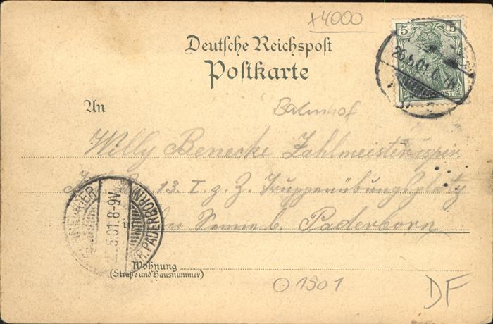 41399602 alte Postkarte DuessELDORF CITY Bahnhof Pferdedroschke Strassenbahn im Mondschein postalisch gelaufen gute Erhaltung KatCode: 11110005111000