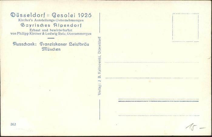 41017494 DuessELDORF CITY bayer. Alpendorf Duesseldorf-Gesolei postalisch nicht gelaufen Alte Ansichtskarte Postkarte Katcode 11110005111000