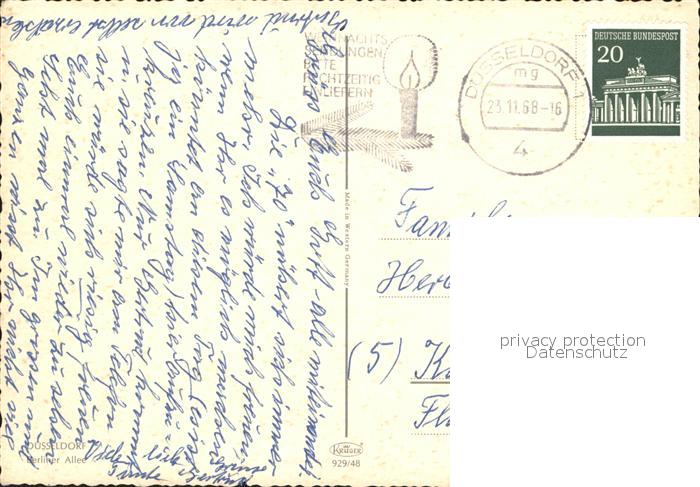 72051711 alte Postkarte DuessELDORF CITY Berliner Allee postalisch gelaufen Erhaltung siehe scans KatCode: 11110005111000