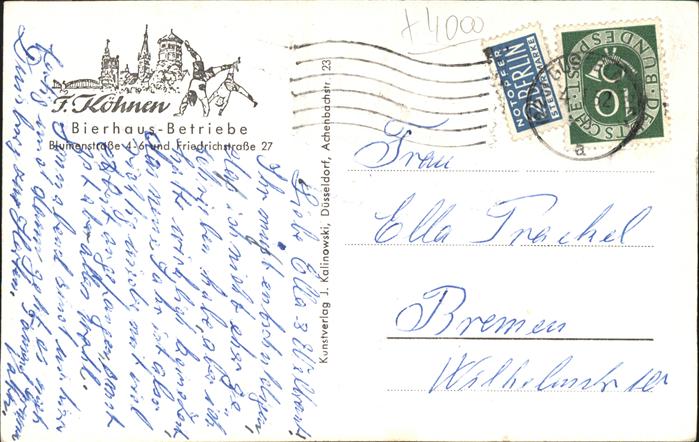41300140 DuessELDORF CITY Bierhaus Betriebe Restaurant innen postalisch gelaufen gute Erhaltung Alte Ansichtskarte Postkarte alte Postkarte hz_L Katcode 11110005111000