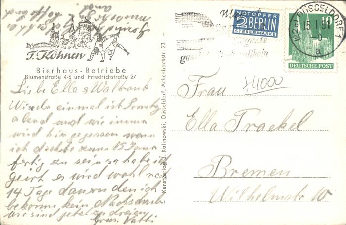 41300215 DuessELDORF CITY Bierhaus Fischl Betriebe postalisch gelaufen Alte Ansichtskarte Postkarte alte Postkarte hz_L Katcode 11110005111000