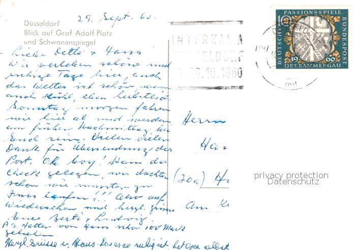 73817712 DuessELDORF CITY Blick auf Graf Adolf Platzund Schwanenspiegel postalisch gelaufen Erhaltung siehe scans [WerneD78] alte Postkarte Wern Katcode 11110005111000