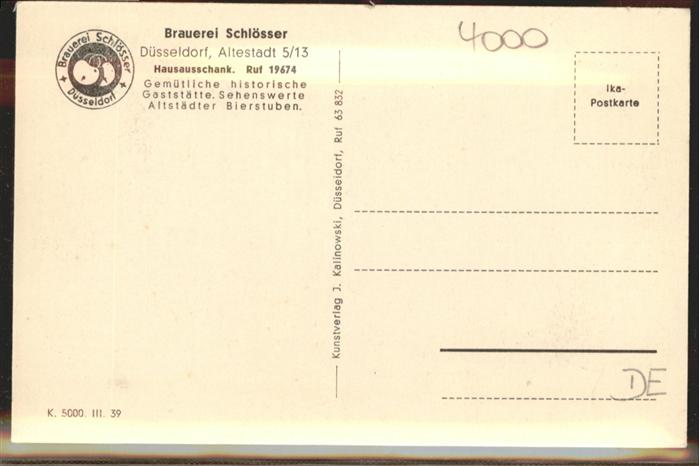 41035884 DuessELDORF CITY Brauerei Schloesser postalisch nicht gelaufen Alte Ansichtskarte Postkarte Chri Katcode 11110005111000