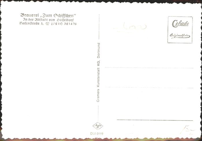 41397850 DuessELDORF CITY Brauerei Zum Schiffchen Hafenstrasse postalisch nicht gelaufen gute Erhaltung Alte Ansichtskarte Postkarte hz_L Katcode 11110005111000