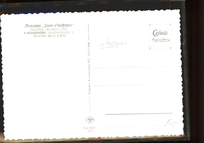 41397854 DuessELDORF CITY Brauerei zum Schiffchen Restaurant postalisch nicht gelaufen gute Erhaltung Alte Ansichtskarte Postkarte hz_L Katcode 11110005111000