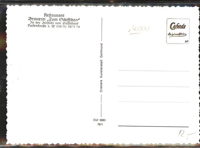 41399062 DuessELDORF CITY Brauerei Zum Schiffchen Restaurant Napoleon Ecke postalisch nicht gelaufen Alte Ansichtskarte Postkarte hz_L Katcode 11110005111000