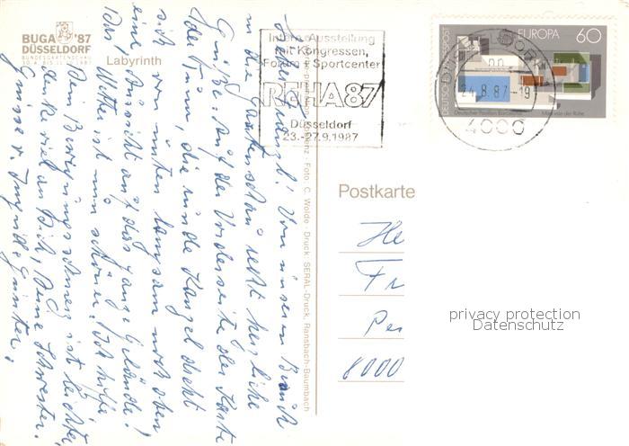 73777875 DuessELDORF CITY BUGA 87 Labyrinth Fliegeraufnahme postalisch gelaufen Erhaltung siehe scans [WerneD78] alte Postkarte Wern Katcode 11110005111000