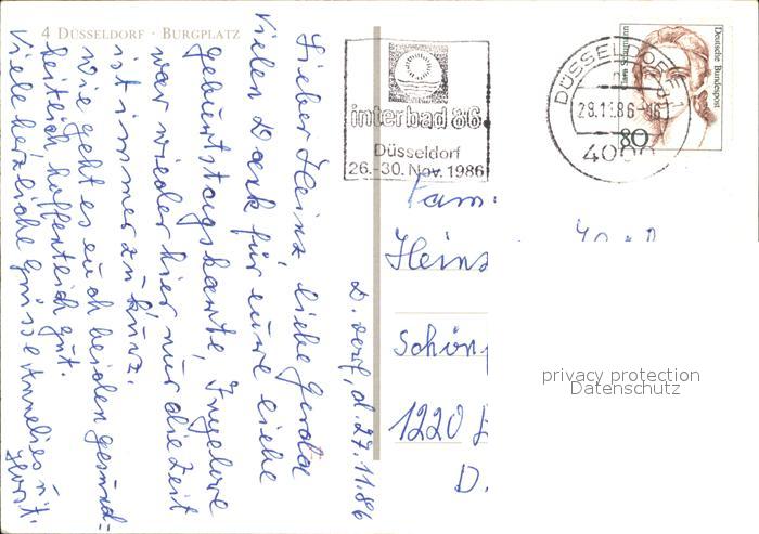72156458 alte Postkarte DuessELDORF CITY Burgplatz postalisch gelaufen Erhaltung siehe scans KatCode: 11110005111000