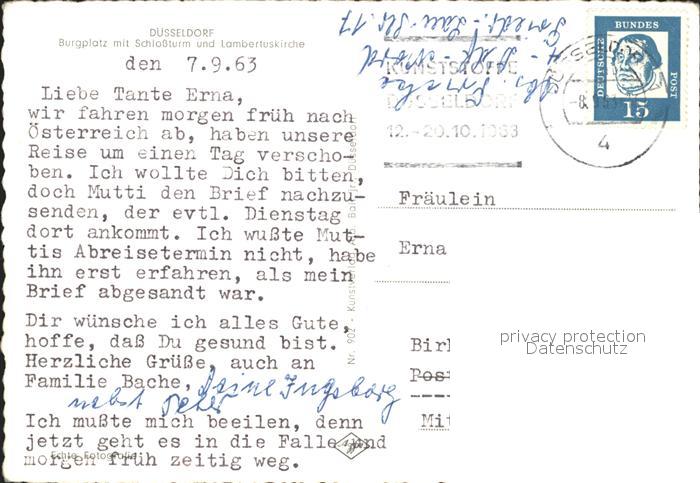 72294455 alte Postkarte DuessELDORF CITY Burgplatz mit Schlossturm und Lambertuskirche postalisch gelaufen Erhaltung siehe scans KatCode: 11110005111000