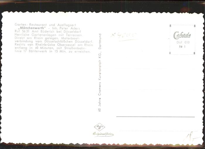 41398324 DuessELDORF CITY Cafe Restaurant Moenchenwerth Segelschiff postalisch nicht gelaufen gute Erhaltung Alte Ansichtskarte Postkarte hz_W Katcode 11110005111000