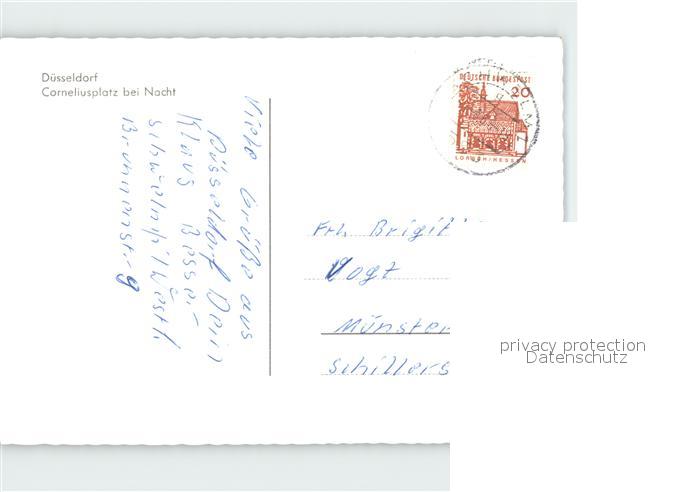 72330223 alte Postkarte DuessELDORF CITY Corneliusplatz bei Nacht postalisch gelaufen Erhaltung siehe scans KatCode: 11110005111000