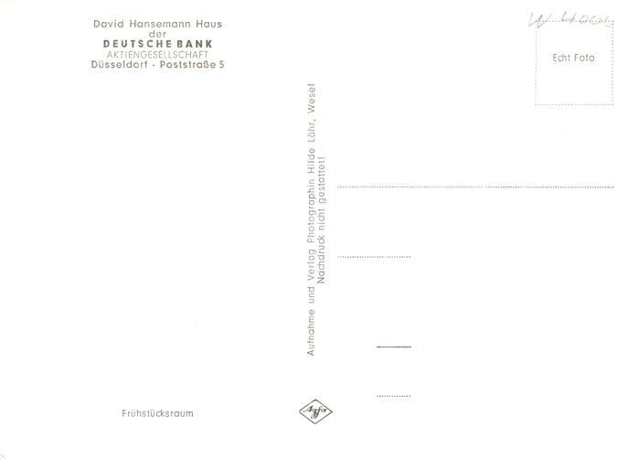 73887060 DuessELDORF CITY David Hansemann Haus der Deutschen Bank AG Gaststube postalisch nicht gelaufen Erhaltung siehe scans [FriedD77] Frie Katcode 11110005111000