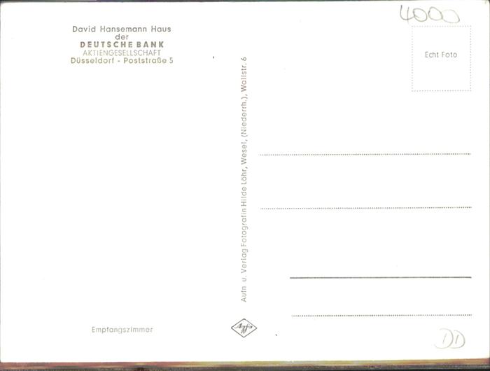 41035784 DuessELDORF CITY David Hansemann Haus postalisch nicht gelaufen Alte Ansichtskarte Postkarte Chri Katcode 11110005111000
